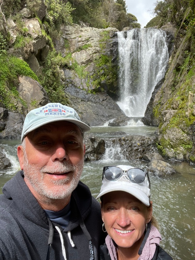 Our first full day in the RV, (hereafter affectionately called “Britzy,” started with a short back-track to Piroa Falls. Yesterday was an adventure on the narrow and curvy roads, today, Terri decided to throw in narrow, curvy and gravel roads as a bonus!?! We found the parking area to Piroa Falls thanks to google maps and another falls-seeking-tourist.