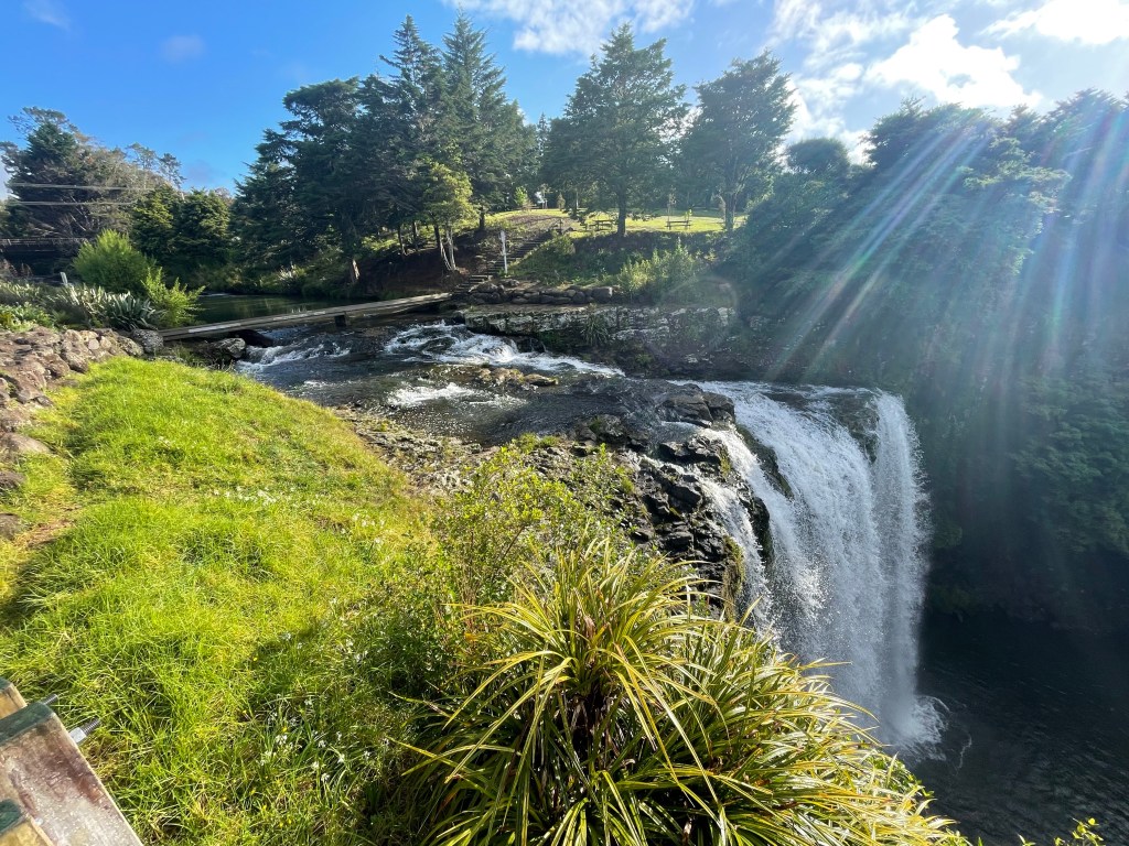 We decided to spend the night in Red Beach, about halfway to our next major destination, the Coromandel Peninsula. On our way, I see a sign that has the word “falls” in it. Immediate trepidation enters my mind. Oh no, another water fall that will delay us by 1-3 hours. But the sign said only 3 kilometers away!?! I suggested that we stop and Terri, without any hesitation, agrees.