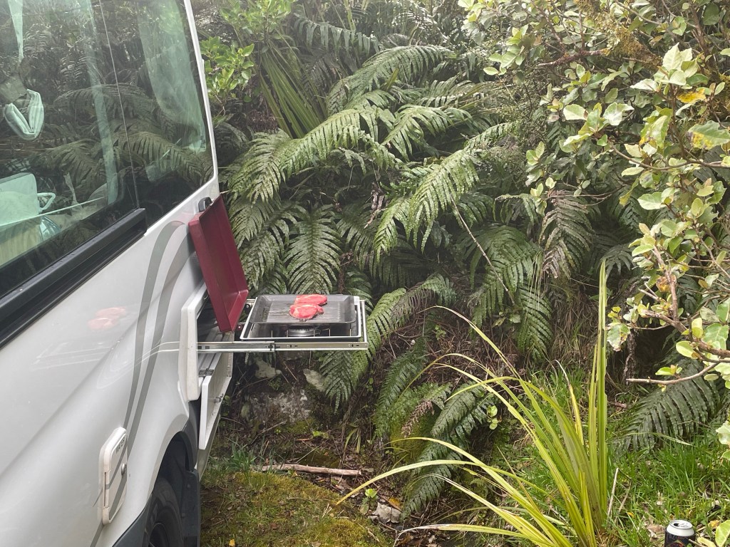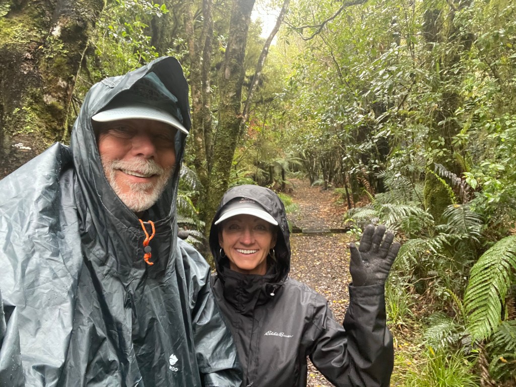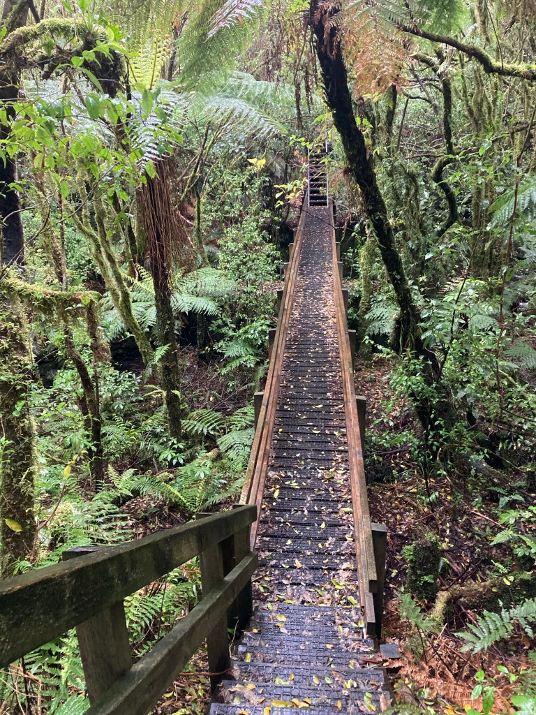 We arrived at the Mt Taranaki visitor center mid afternoon during a light lain. We sought the advice of a ranger at the center and He suggested a couple of hikes that might shelter us from the approaching storm. Our plan was to stay in the “ freedom” camp site in the parking lot of the visitor center.