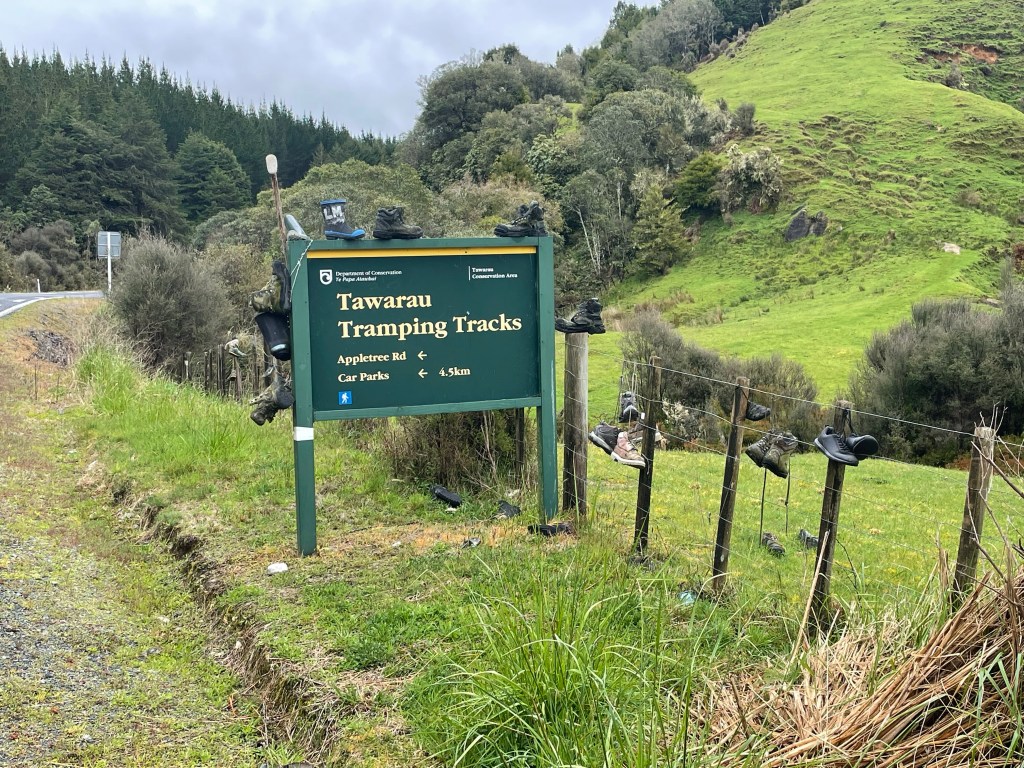 Safely out of the caves, we headed to my original hike. Odd, but there were hundreds of shoes hanging on the fence and sign for our turnoff to the hike.