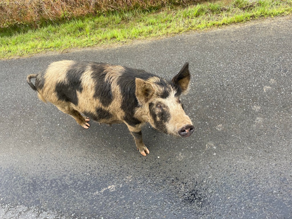 She stood in the middle of the road until I stopped, then she sauntered around to my side of the car, then around to Terri’s side. Not sure what she wanted but I think there was about 200 pounds of bacon there.